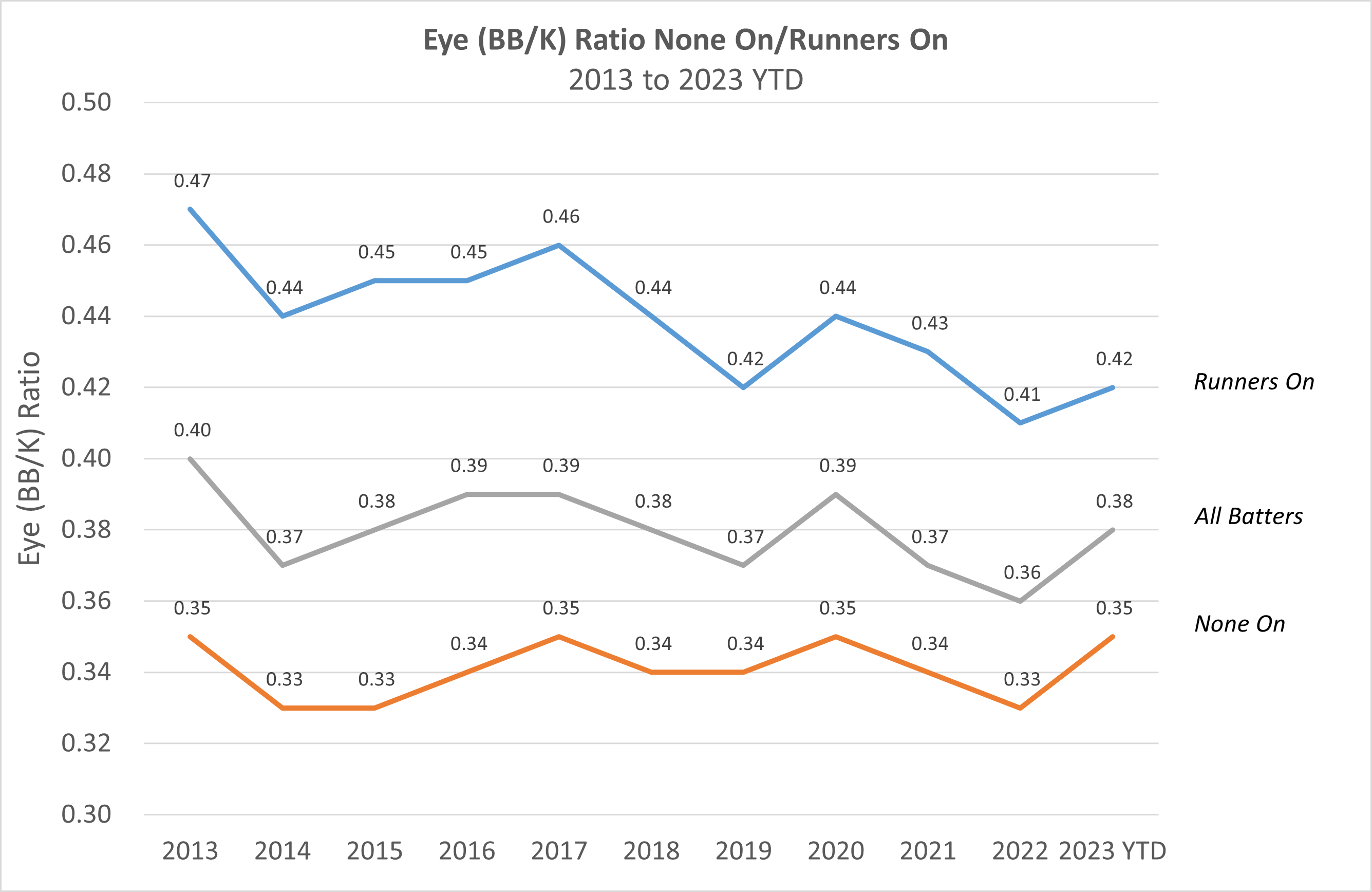 Let's take a look at significant none on/runners on splits so far in 2023.